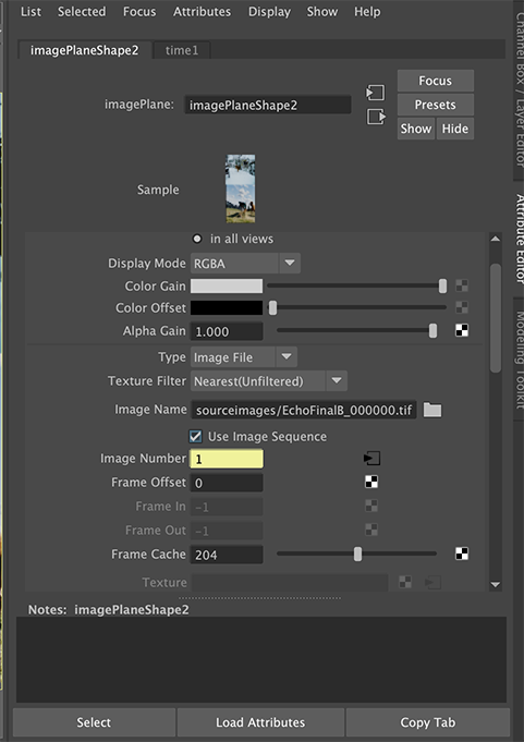 5. Click on the attribute editor tab and below Image Name, turn Use Image Sequence On.